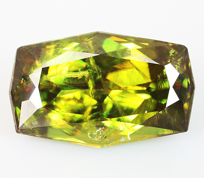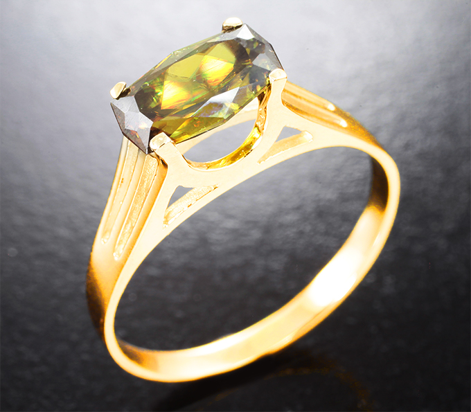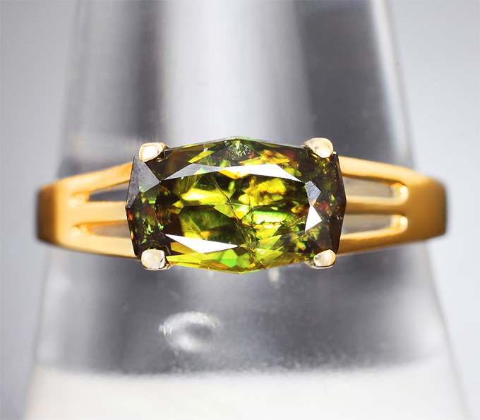 Кольцо с желто-зеленым сфеном авторской огранки 1,76 карата
