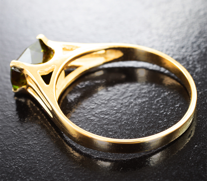 Вашему вниманию предлагается кольцо из желтого золота 585 пробы желто-зеленым сфеном авторской огранки! Площадка 9,4 х 5,9 мм, высота 7 мм. Вес изделия 2,55 г. Размер 19. Ниже приводятся ювелирные характеристики вставки.