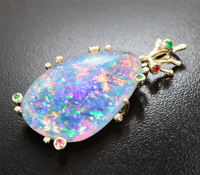Кулон с австралийским триплет опалом 24,84 карата, цаворитами, сапфирами и бриллиантами