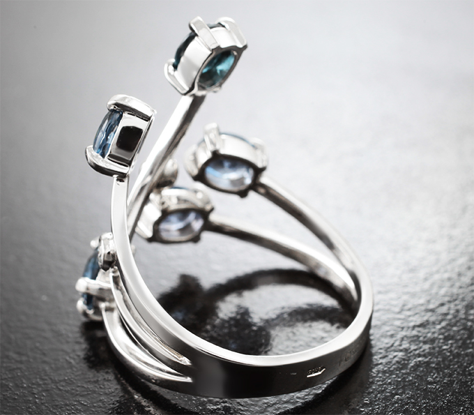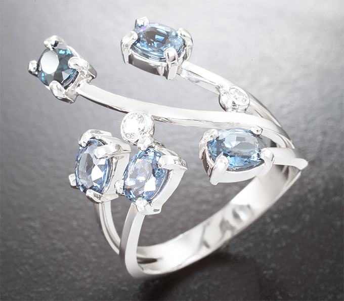 Кольцо с синими шпинелями 2,31 карата и муассанитами