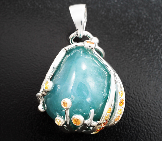 Кулон с крупным грандидьеритом 38,97 карата, желтыми и оранжевыми сапфирами