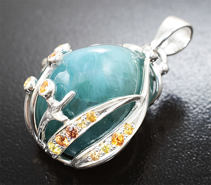 Вашему вниманию предлагается кулон из стерлингового серебра (925 проба) с крупным грандидьеритом, желтыми и оранжевыми сапфирами! Диаметр дополнительной инкрустации от 1,5 мм до 2 мм. Размеры кулона с петлей 32 х 22 мм. Вес изделия 11,08 г. Ниже приводятся ювелирные характеристики вставки.