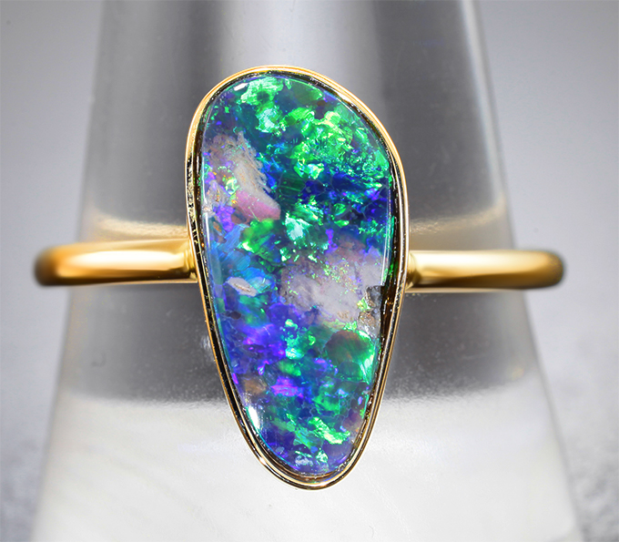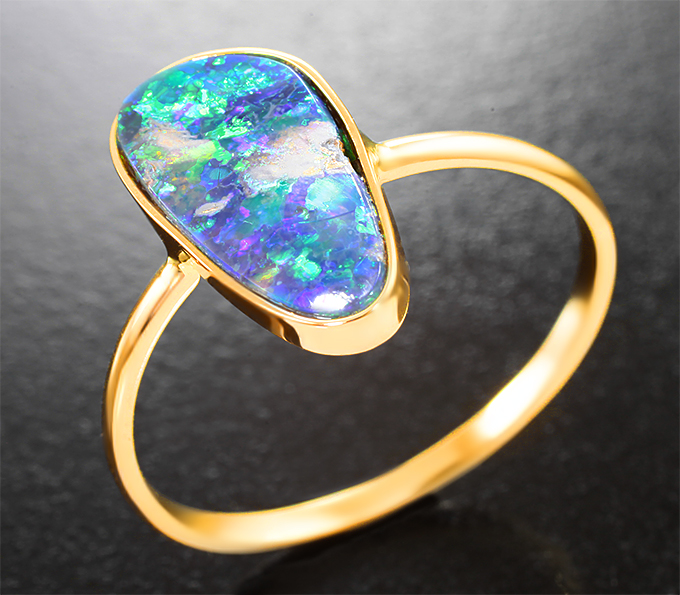 Вашему вниманию предлагается кольцо из желтого золота 585 пробы c австралийским черным опалом! Площадка 16 х 9 мм, высота 4 мм. Вес изделия 2,17 г. Размер 20,5. Ниже приводятся ювелирные характеристики вставки.