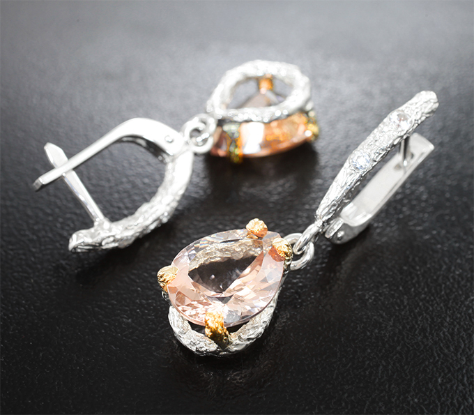 Комплект с морганитами 22,24 карата и лейкосапфирами