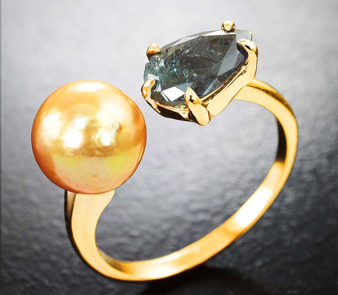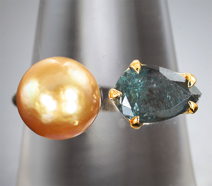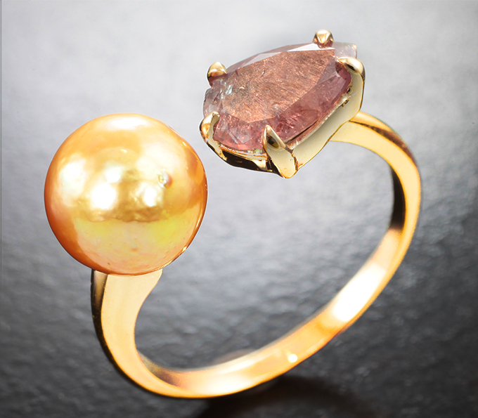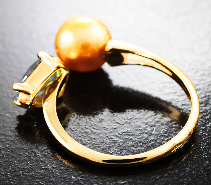 Кольцо с уральским александритом 1,07 карата и золотистой морской жемчужиной 3,6 карата