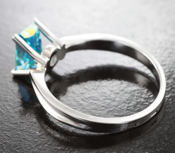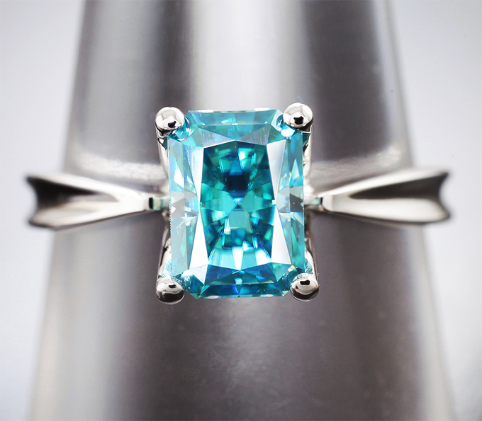 Кольцо с зеленовато-голубым муассанитом высокой чистоты 1,03 карата