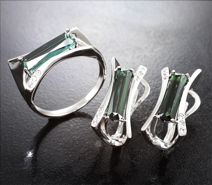 Комплект с индиголитами турмалинами 4,03 карата и лейкосапфирами