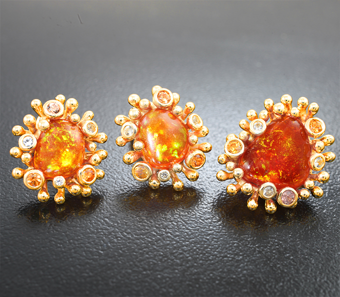 Комплект с кристаллическими эфиопскими опалами 4,92 карата, оранжевыми сапфирами и бесцветными цирконами