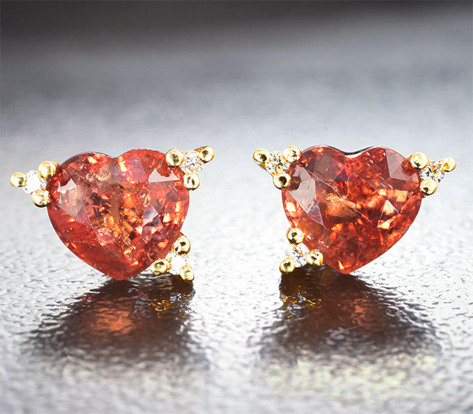 Пусеты с желтовато-оранжевыми шпинелями 2,26 карата и бриллиантами