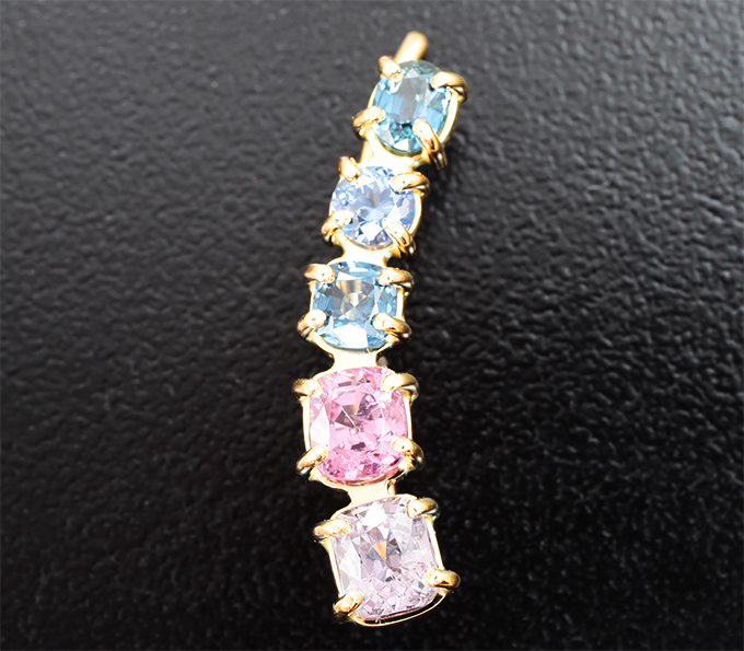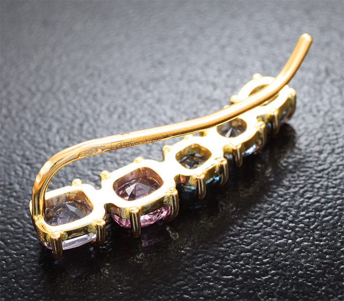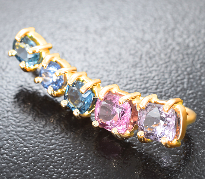 Кафф с фиолетовой, розовой и синими шпинелями 2,1 карата