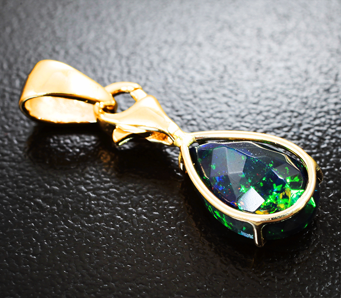 Кулон с ограненным черным опалом 2,43 карата