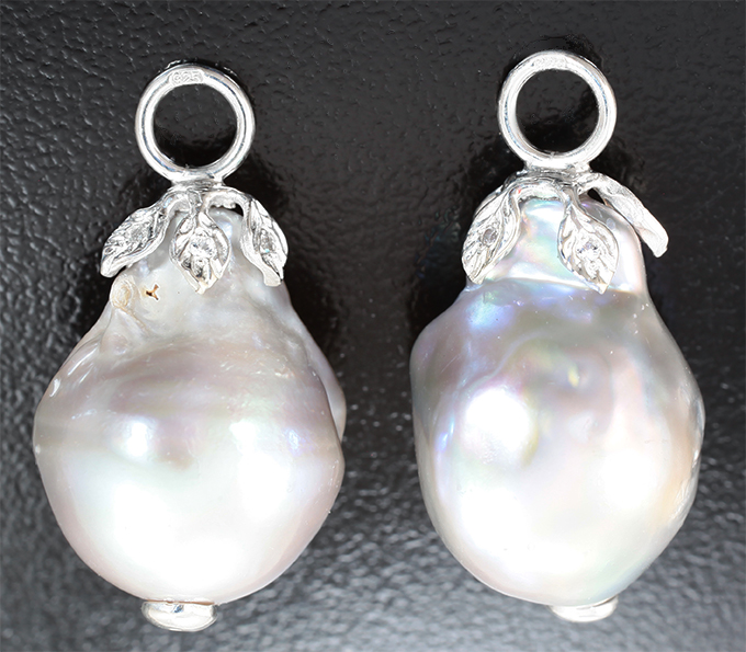 Вашему вниманию предлагаются подвесы для серен из стерлингового серебра (925 проба) с крупным серебристым морским жемчугом барокко и лейкосапфирами! Диаметр дополнительной инкрустации 1,1 мм. Размеры изделия 27 х 15 мм. Вес пары 10,77 г. Ниже приводятся ювелирные характеристики.