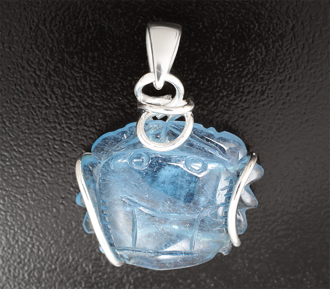 Кулон с миниатюрой «Краб» из цельного аквамарина 18,35 карата