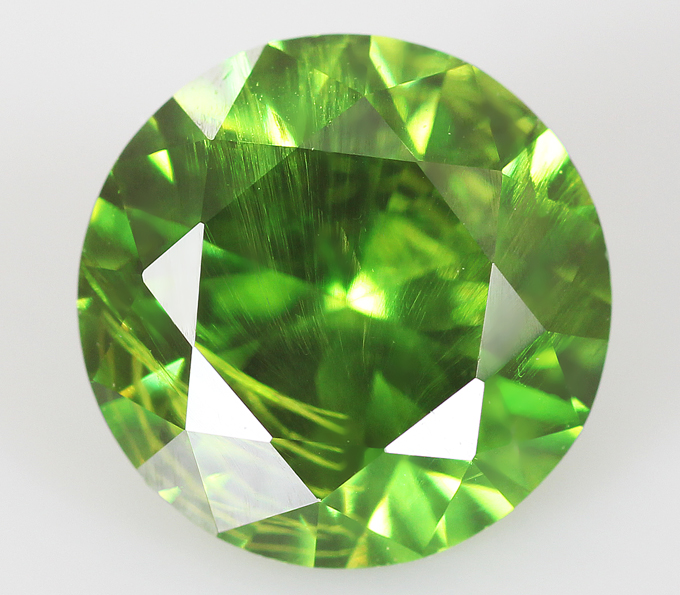 Вашему вниманию предлагается кольцо из желтого золота 585 пробы с уральским демантоидом топовой огранки и бриллиантами! Диаметр дополнительной инкрустации 1,1 мм и 1,5 мм. Ширина площадки 5 мм, высота 7 мм. Вес изделия 1,98 г. Размер 18. Ниже приводятся ювелирные характеристики вставки.