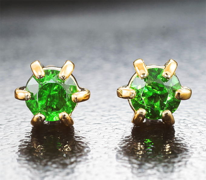Вашему вниманию предлагаются пусеты из желтого золота 585 пробы с уральскими демантоидами! Диаметр пусет 5 мм. Вес пары 1,77 г. Ниже приводятся ювелирные характеристики вставок.