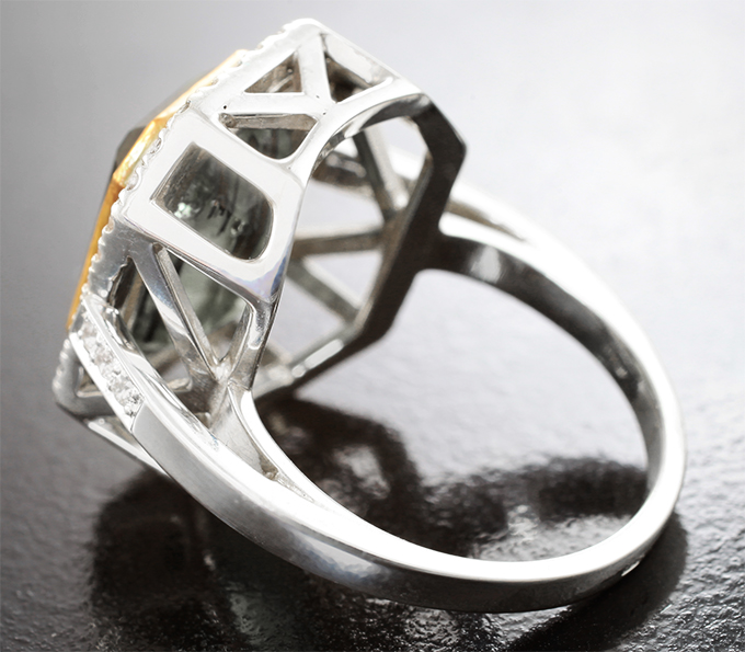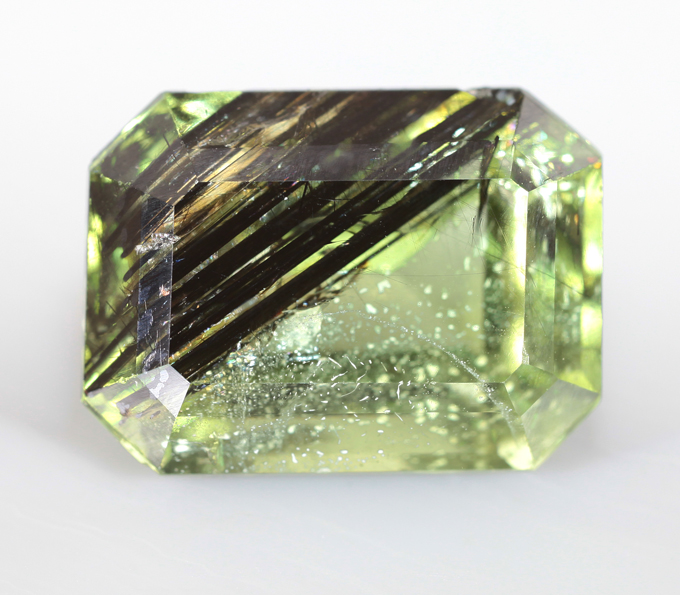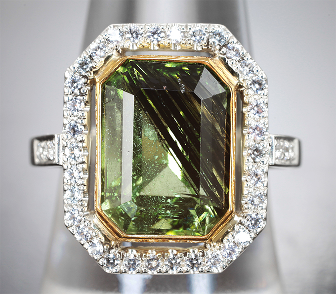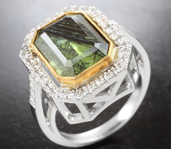 Кольцо с перидотом с рутилом 7,96 карата и лейкосапфирами