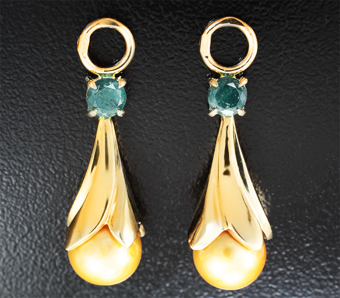 Подвесы с уральскими александритами 0,62 карата и золотистым морским жемчугом 7,4 карата