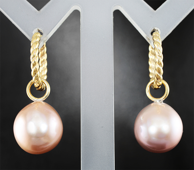 Подвесы с цветным жемчугом: размеры 18 х 12 мм. Вес пары 4,66 г.