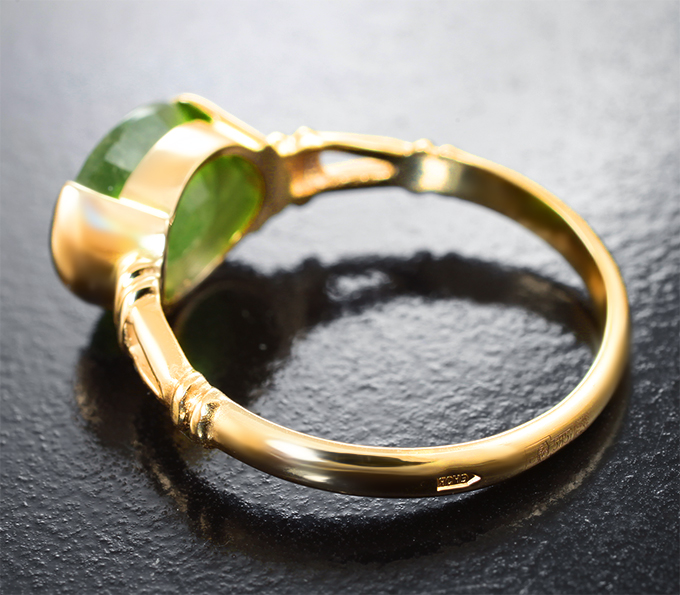 Вашему вниманию предлагается кольцо из желтого золота 585 пробы с ярким цаворитом! Площадка 11 х 7 мм, высота 5 мм. Вес изделия 2,95 г. Размер 17,5. Ниже приводятся ювелирные характеристики вставки.