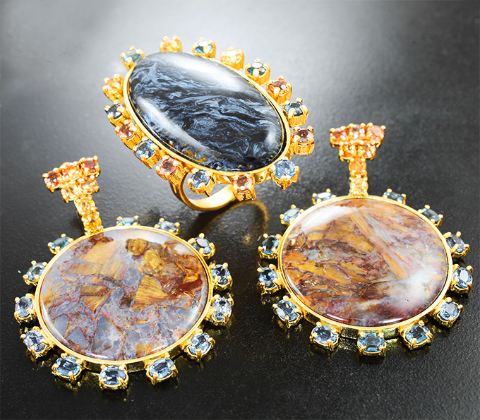 Комплект с петерситами 106,95 карата, шпинелями и сапфирами
