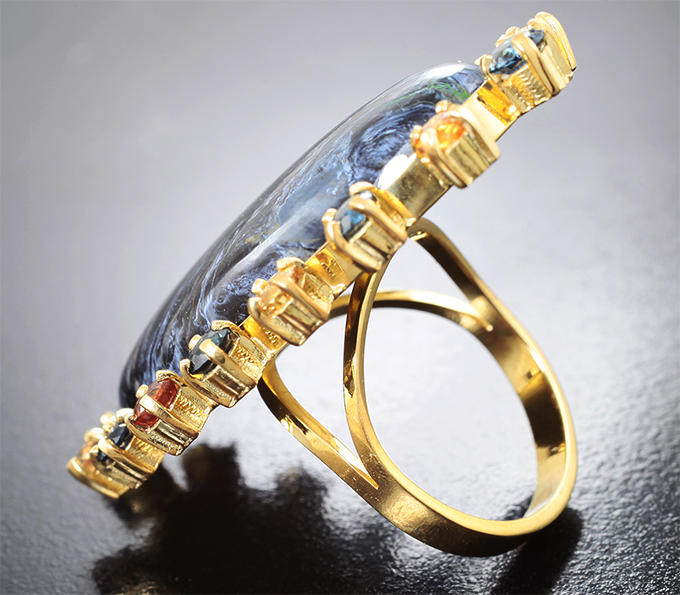 Вашему вниманию предлагается комплект (кольцо + серьги) из стерлингового серебра (925 проба) с петерситами, шпинелями и сапфирами! Изделия позолочены. Размеры вставок от 3 мм до 5 х 3 мм. Вес комплекта 49,23 г.