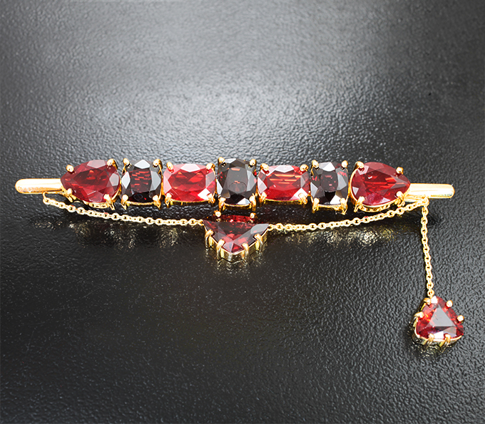 Брошь с красновато-оранжевыми шпинелями и андезинами 4,86 карата
