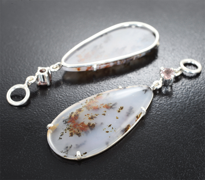 Подвесы для серег с агатом с включениями дендритов 16,02 карата и гранатами со сменой цвета