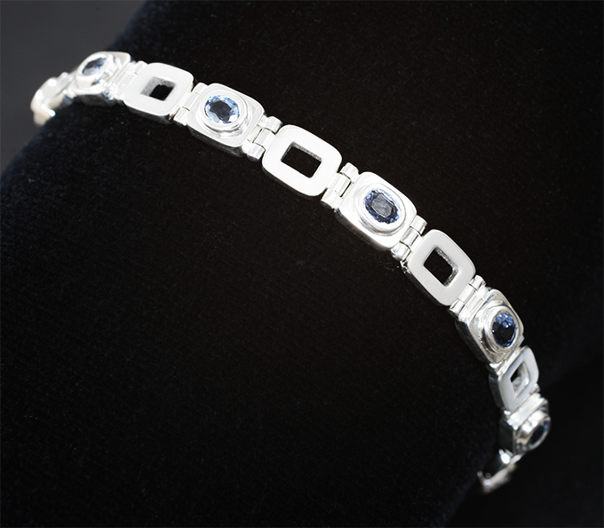 Вашему вниманию предлагается браслет из стерлингового серебра (925 проба) с синими шпинелями!Длина браслета 190 мм, ширина 5 мм. Вес изделия 10,9 г. Ниже приводятся ювелирные характеристики.