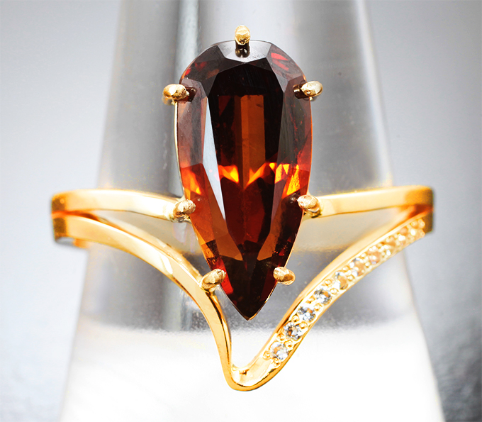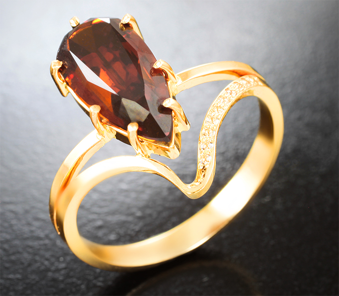 Кольцо с гранатом 4,52 карата и 10 бриллиантами