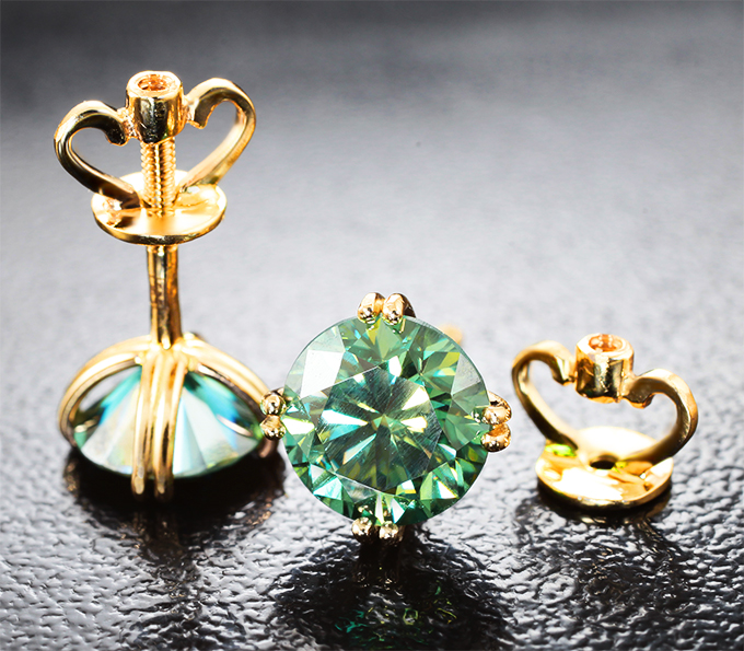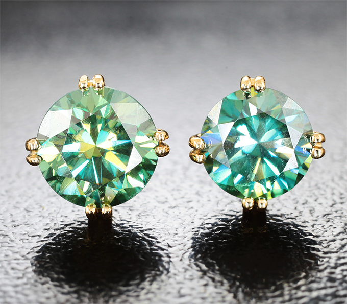 Вашему вниманию предлагаются серьги из желтого золота 585 пробы с муассанитами! Диаметр вставок 8 мм. Вес пары 1,56 г. Ниже приводятся ювелирные характеристики вставок.