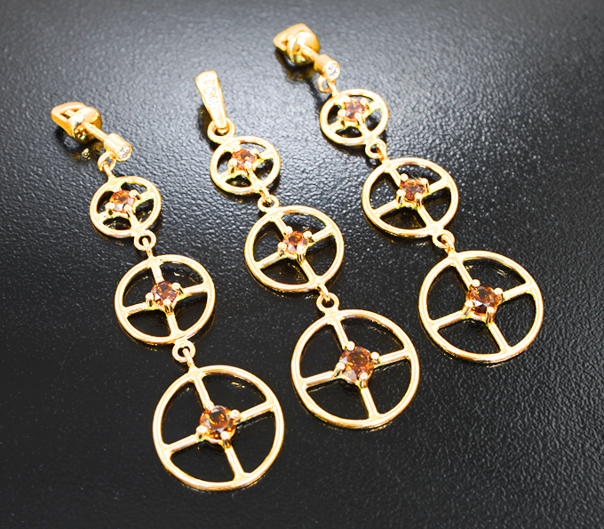 Вашему вниманию предлагается комплект (серьги + кулон) из желтого золота 585 пробы с топазолитами 1,78 карата и бриллиантами! Диаметр вставок от 1,5 мм до 4 мм. Вес комплекта 8,78 г.