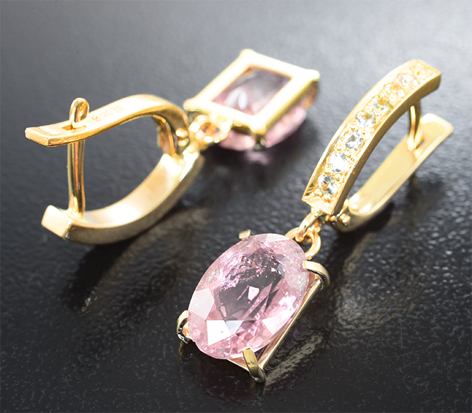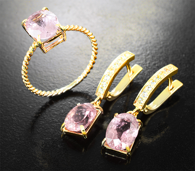 Комплект с неоново-розовыми турмалинами 6,22 карата и лейкосапфирами