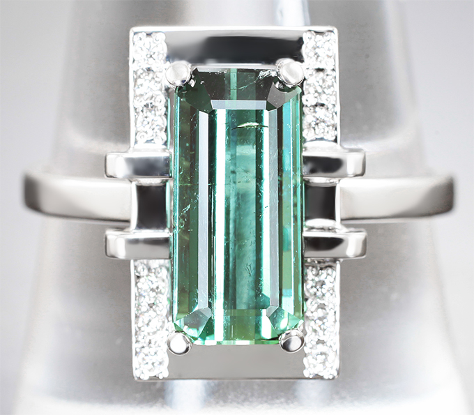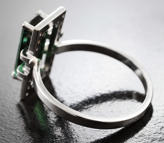 Кольцо с изумрудно-зеленым турмалином 2,4 карата и бриллиантами