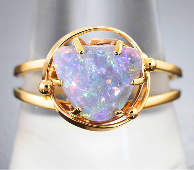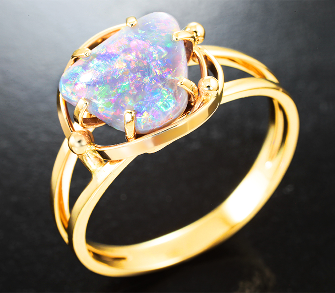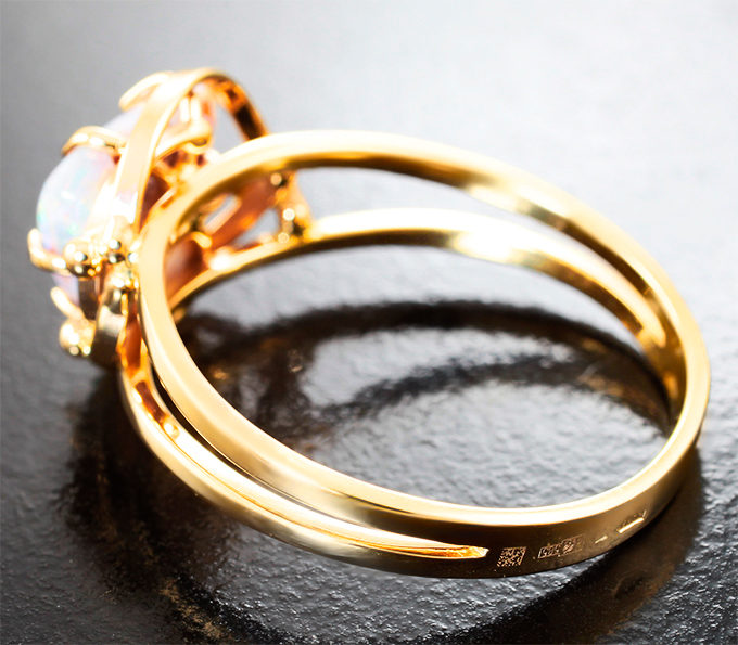Вашему вниманию предлагается кольцо из желтого золота 585 пробы c австралийским solid опалом! Площадка 14 х 13 мм, высота 6 мм. Вес изделия 3,75 г. Размер 20,5. Ниже приводятся ювелирные характеристики вставки.