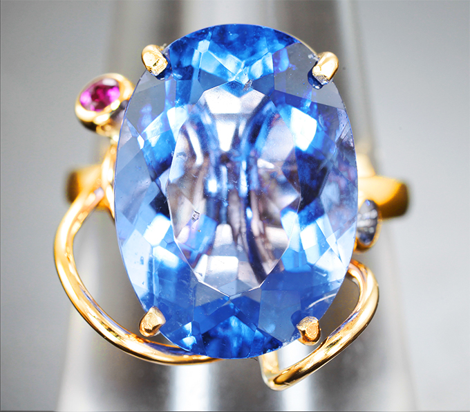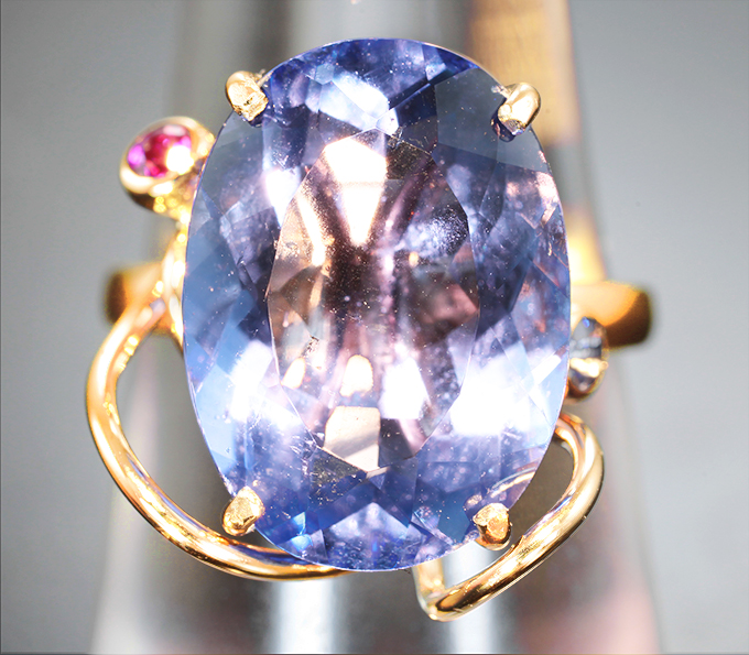 Кольцо с флюоритом со сменой цвета 8,71 карата, розовым и голубым сапфирами