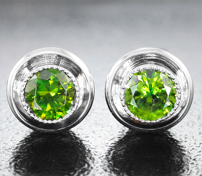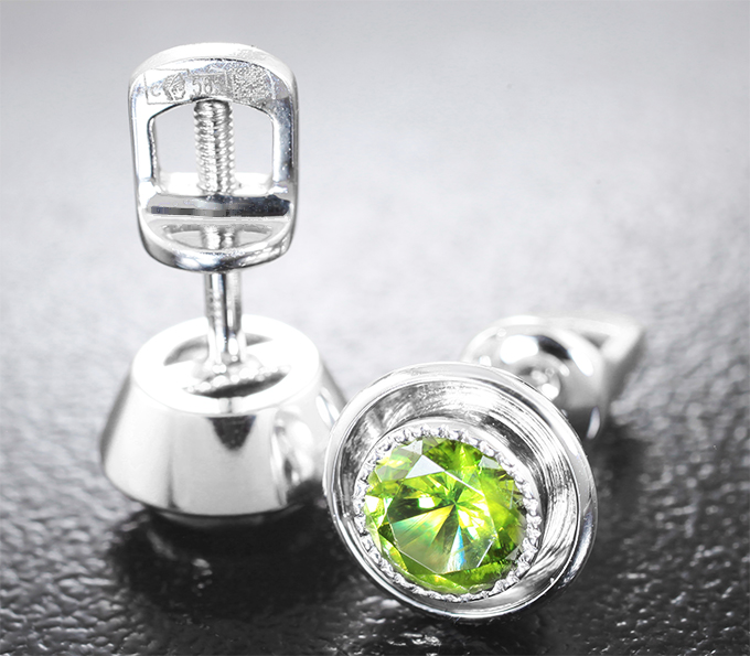 Серьги с насыщенными зелеными демантоидами 1,03 карата