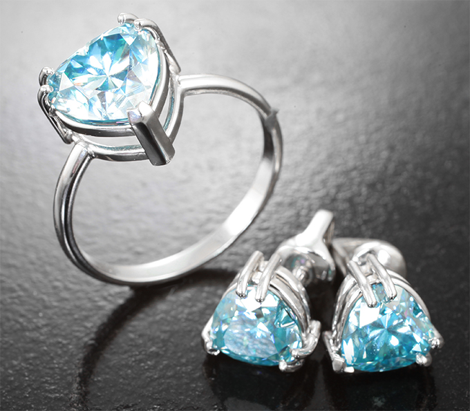 Комплект с голубыми муассанитами 4,19 карата