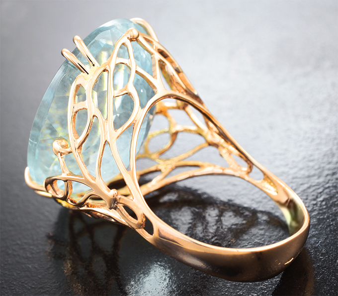 Вашему вниманию предлагается кольцо из розового золота 585 пробы c насыщенным аквамарином! Площадка 25 х 18 мм, высота 11 мм. Вес изделия 10,3 г. Размер 20. Ниже приводятся ювелирные характеристики вставки.