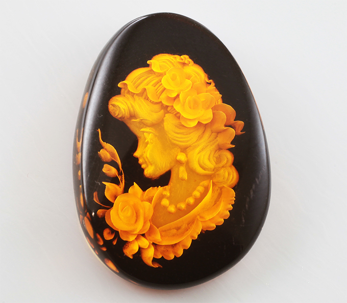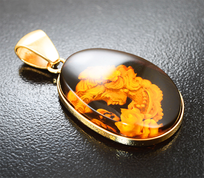 Кулон с резным янтарем 9,08 карата