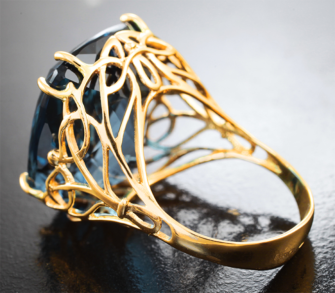 Вашему вниманию предлагается кольцо из желтого золота 585 пробы с чистейшим синим London топазом! Площадка 22 х 21 мм, высота 12 мм. Вес изделия 12,59 г. Размер 19. Ниже приводятся ювелирные характеристики вставки.