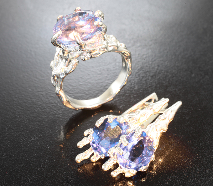 Вашему вниманию предлагается комплект (кольцо + серьги) из стерлингового серебра (925 проба) с флюоритами со сменой цвета! Вес комплекта 13,77 г.