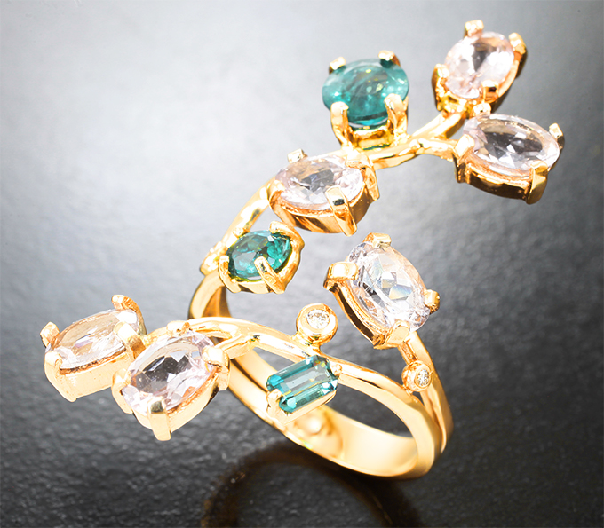 Кольцо с грандидьеритами 1,1 карата, морганитами и бриллиантами