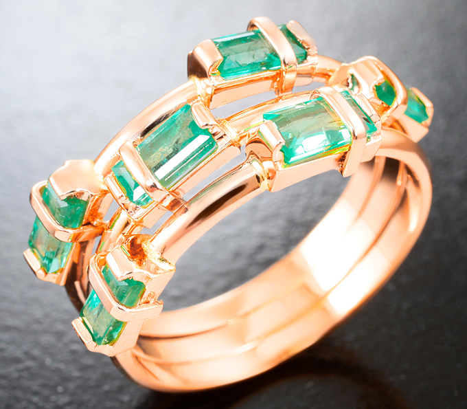 Вашему вниманию предлагается кольцо из красного золота 585 пробы c уральскими изумрудами! Площадка 22 х 9 мм, высота 3 мм. Вес изделия 4,79 г. Размер 17,5. Ниже приводятся ювелирные характеристики вставок.