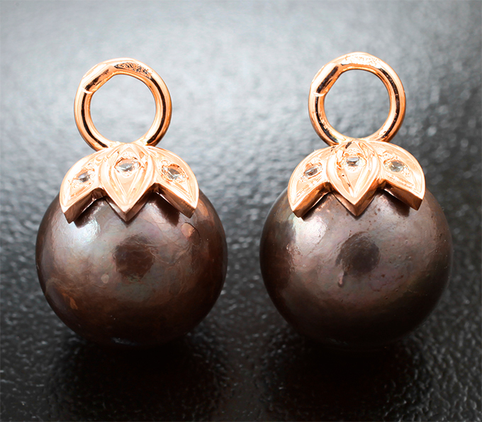 Вашему вниманию предлагаются подвесы для серег из красного золота 585 пробы с цветным морским жемчугом и лейкосапфирами! Диаметр дополнительной инкрустации 1,5 мм. Размеры изделия 18 х 12 мм. Вес пары 6,11 г. Ниже приводятся ювелирные характеристики жемчуга.