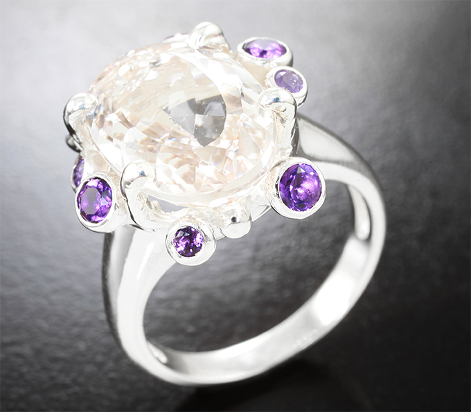 Кольцо с морганитом высокой чистоты 6,5 карата и аметистами