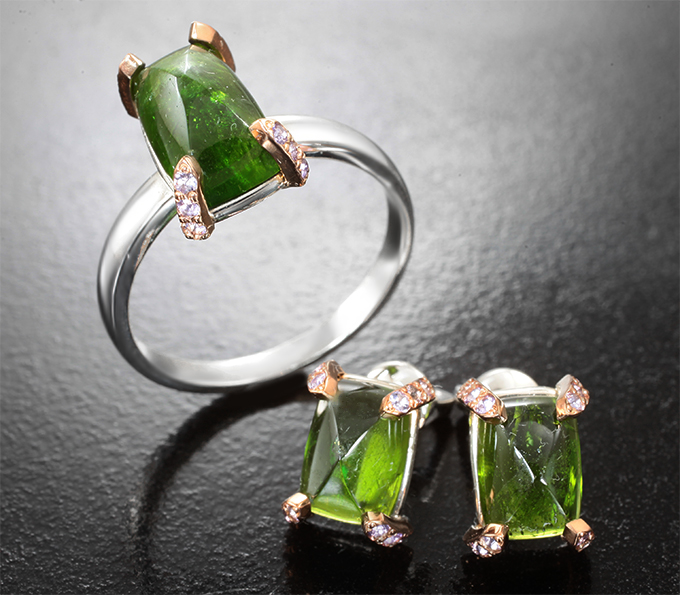 Комплект с уральскими диопсидами 7,36 карата и аметистами