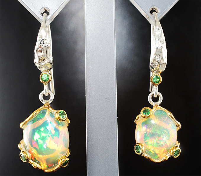 Серьги с кристалличевскими эфиопскими опалами 8,16 карата и цаворитами