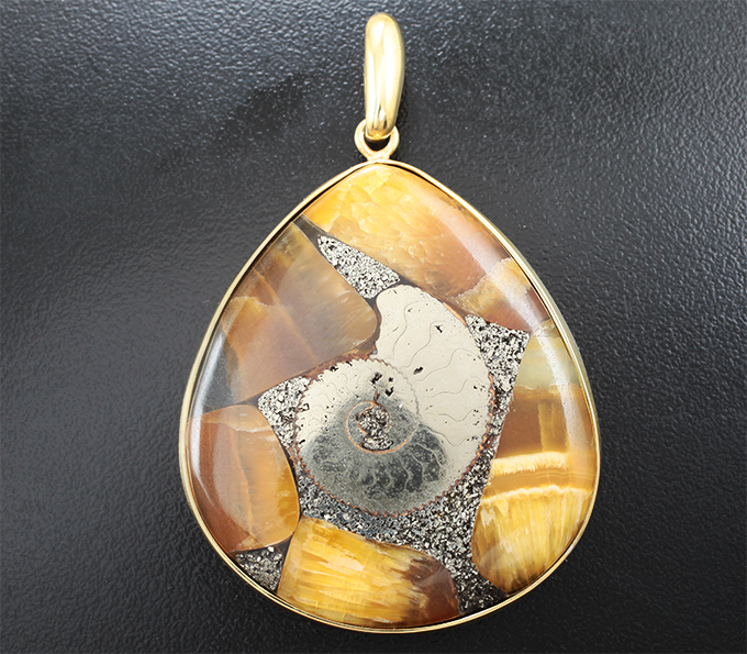 Кулон с пиритовым аммонитом с симбирцитом 90,43 карата