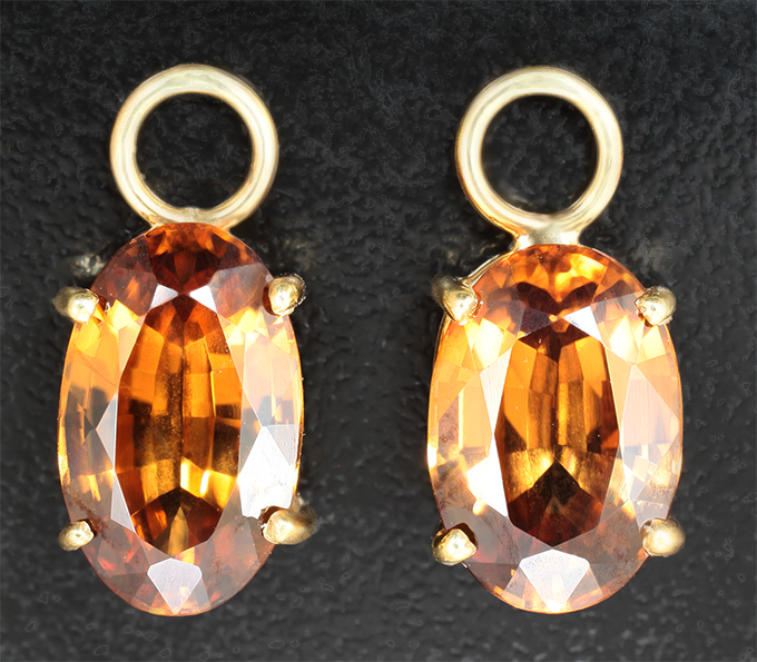 Подвесы для серег с крупными золотисто-желтыми цирконами 11,38 карата