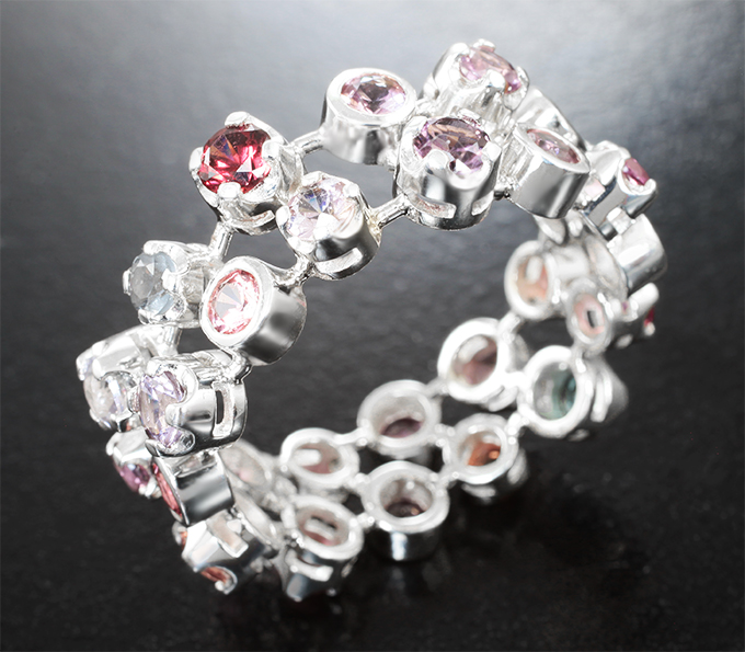 Вашему вниманию предлагается кольцо из стерлингового серебра (925 проба) c разноцветными шпинелями! Ширина площадки 9 мм, высота 4 мм. Вес изделия 5,72 г. Размер 20. Ниже приводятся ювелирные характеристики вставок.